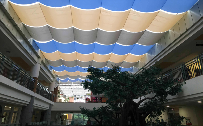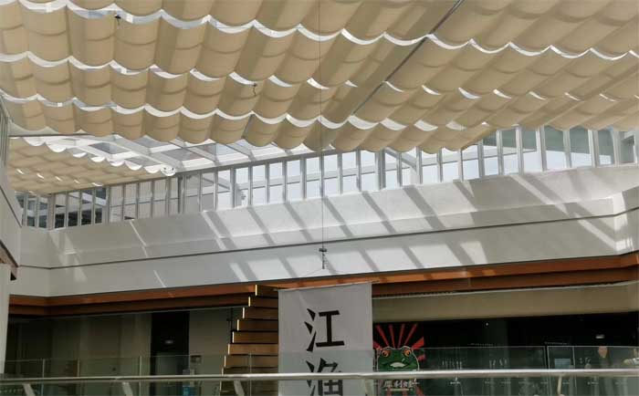 佛山順德大良濤匯廣場(chǎng)采光頂電動(dòng)遮陽(yáng)棚 天棚簾實(shí)拍 工廠(chǎng)占地3000㎡,集設(shè)計(jì)、生產(chǎn)、銷(xiāo)售,安裝等于一體的窗簾公司